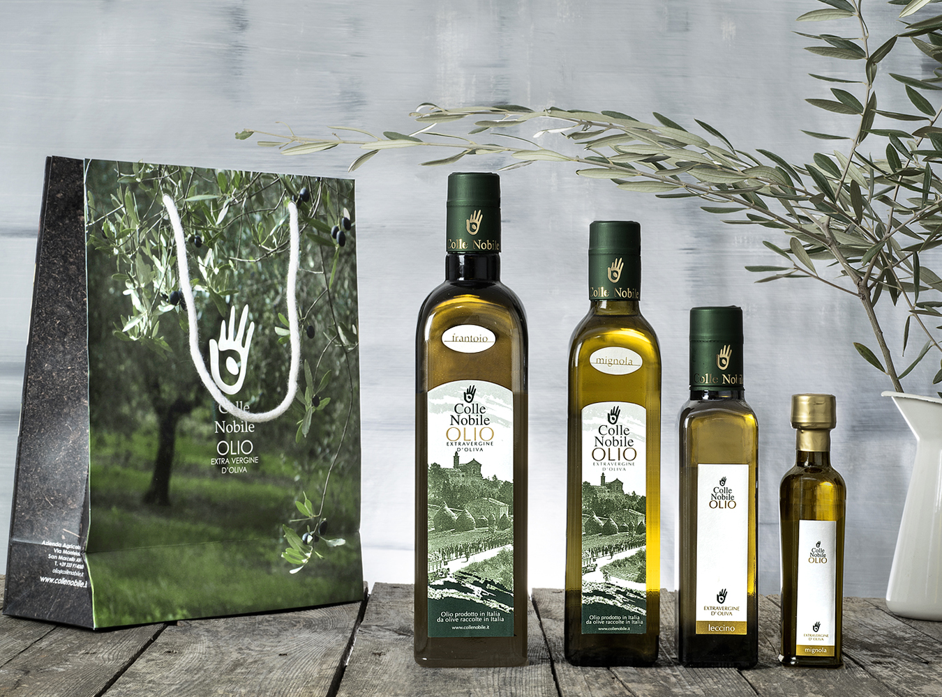 Photography of still life, product lifestyle, landscapes, and portraits of the owner, used in the graphic of the catalog, website, and corporate materials, to communicate the Colle Nobile brand identity through a natural, sustainable, biodynamic approach.